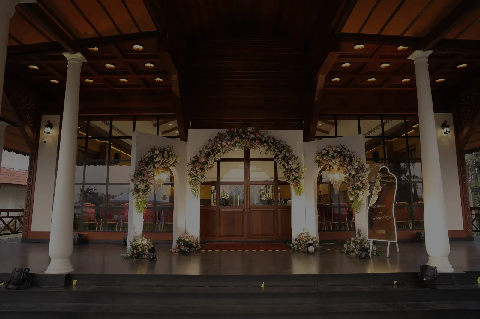 Theeram, our expansive waterfront lawn, opens toward the backwaters and sky, offering a serene setting for grand wedding celebrations. Arangu, the indoor banquet hall, provides a composed and intimate space for rituals and gatherings that call for comfort and focus. For smaller, more personal moments, Saras, with its pool deck and lawn, creates a gentle atmosphere where celebrations feel close and relaxed.