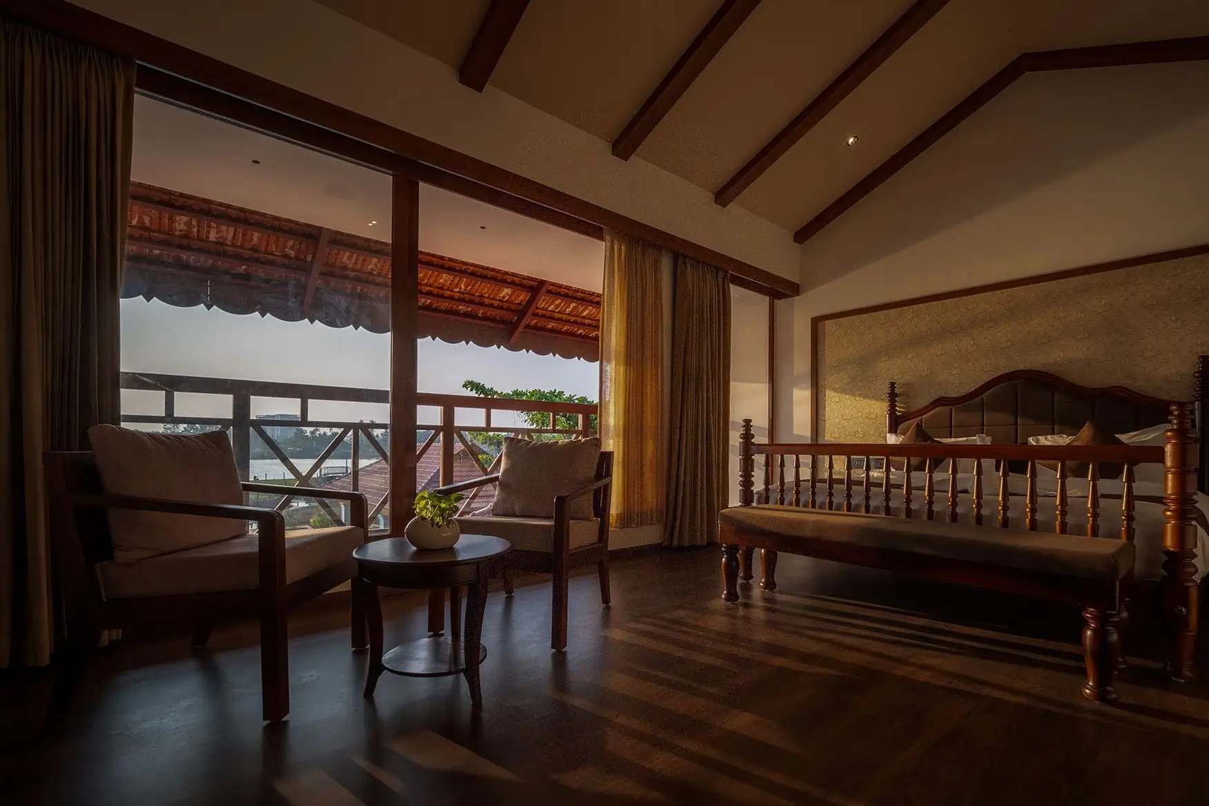 Overlooking calm waters, this room offers a peaceful stay for up to 3 guests within a 350–400 sq. ft. layout. Thoughtfully designed with a king size bed, the room opens to serene lake views—private balconies on the upper floor and gentle outdoor access on the lower floor invite slow mornings and quiet sunsets by the water.